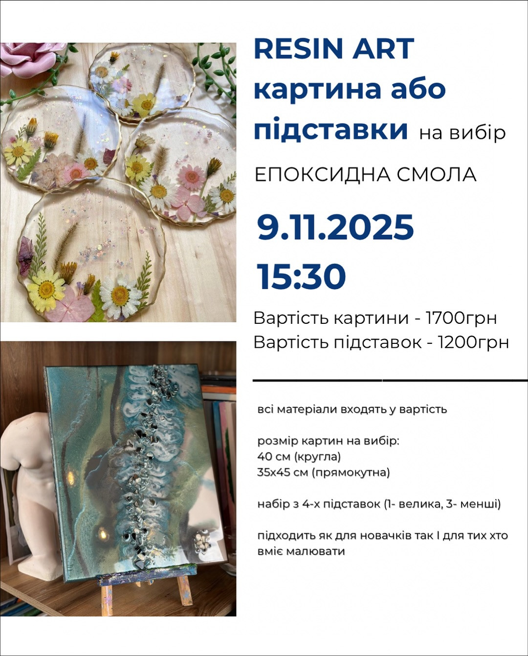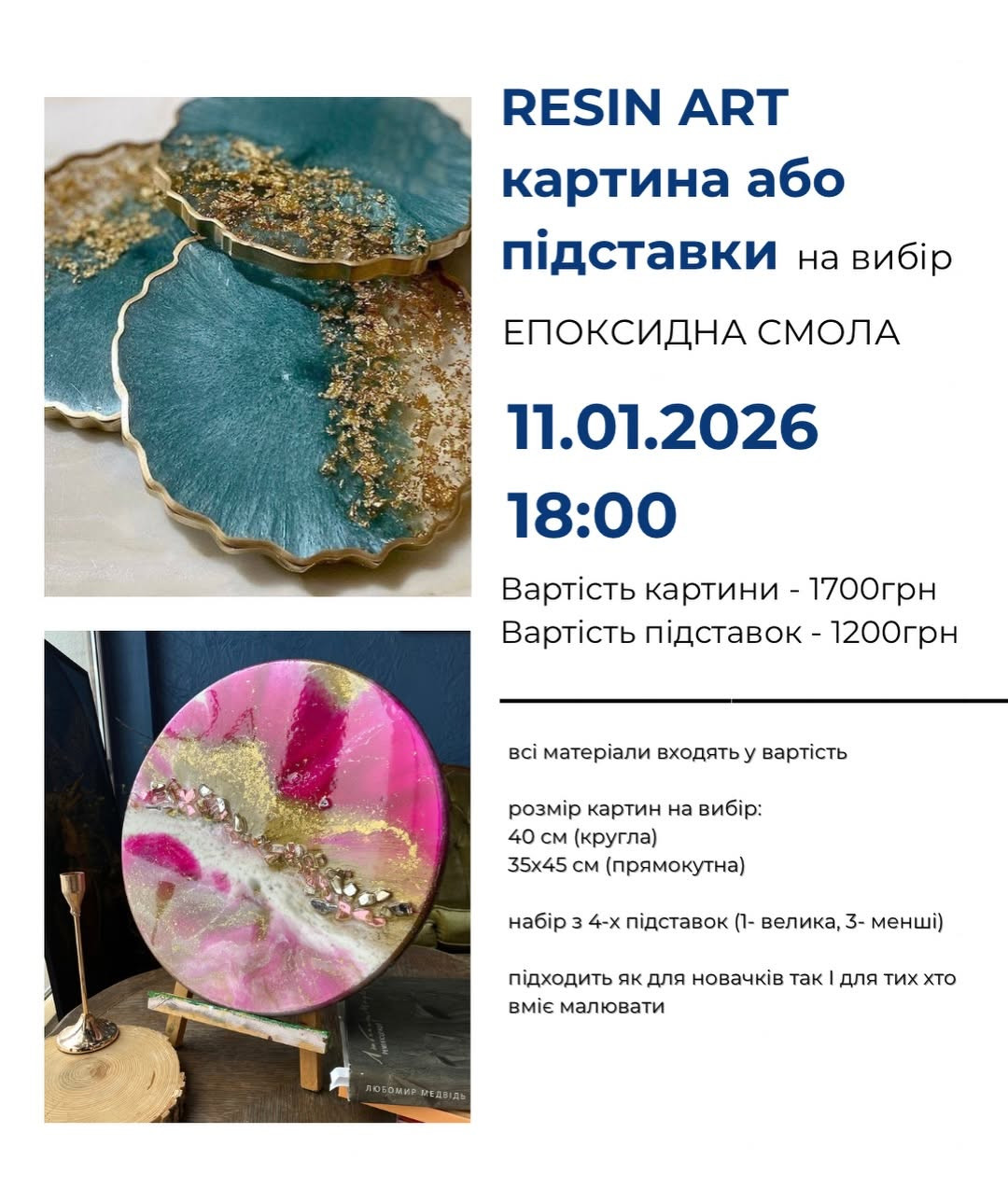 Майстер-клас "RESIN ART картина або підставки з епоксидної смоли на вибір" у місті Івано-Франківськ