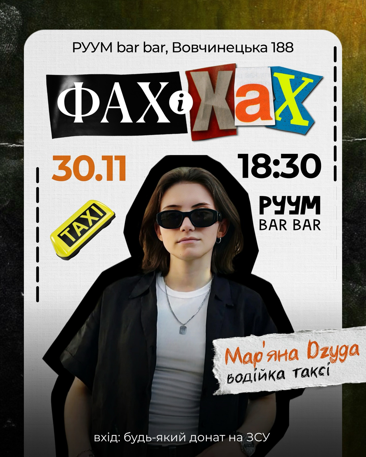 "Фах і хах" з водійкою таксі — це формат в якому запрошена фахова гостя разом з коміками відповідатиме на питання про свою діяльність.
