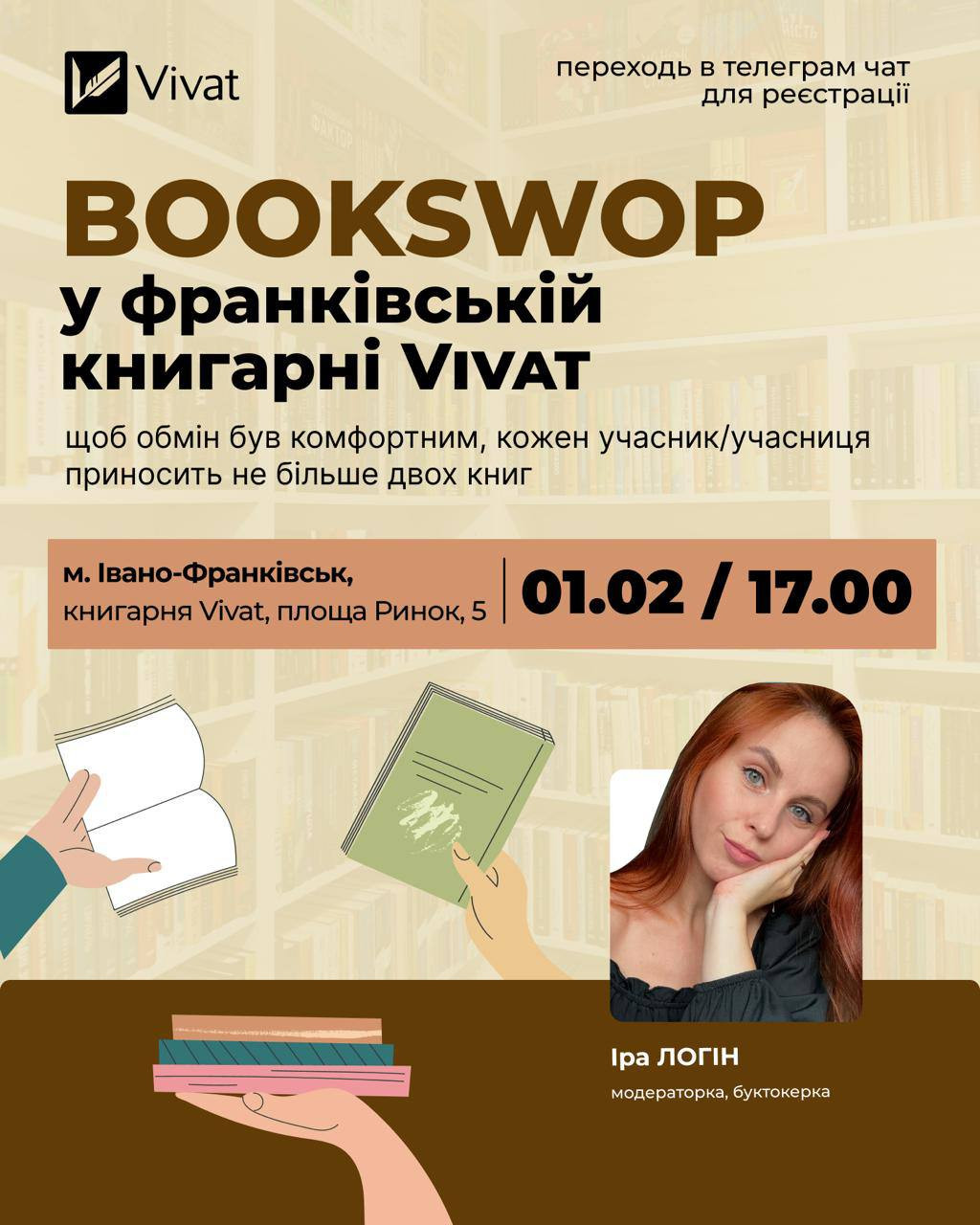 Запрошую на подію. Bookswop — це не просто обмін книжками. Це спосіб дати історіям друге життя, знайти нові улюблені книги