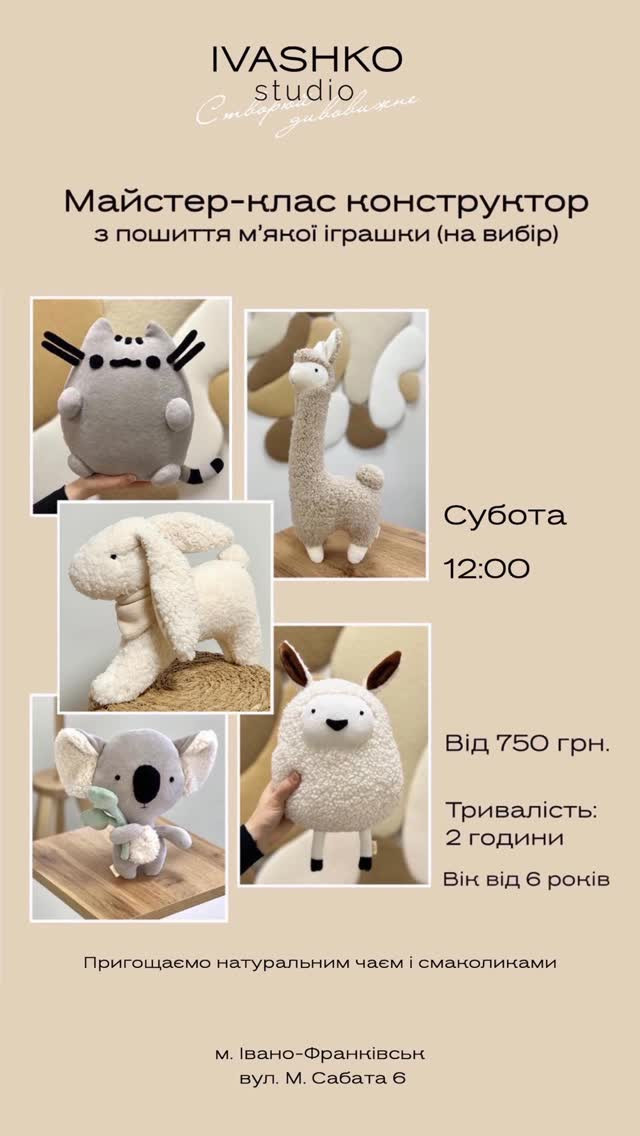 Запрошуємо дітей на творчий майстер-клас! Кожен учасник зможе обрати улюблену тваринку та власноруч створити її, поєднуючи деталі й фантазію.