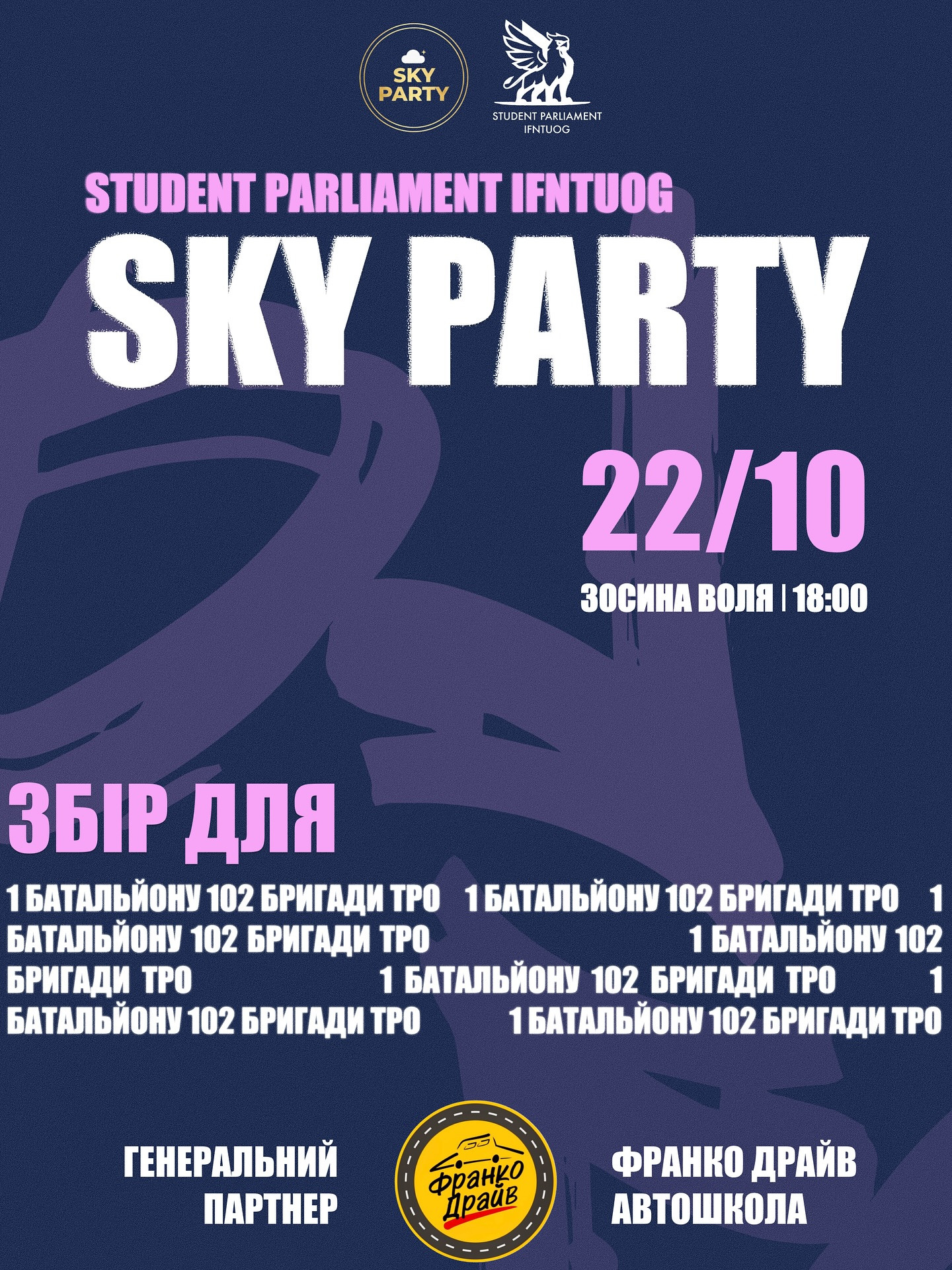 Під час Sky Party відбудеться аукціон та збір коштів для ЗСУ, на підтримку 1 батальйону 102 бригади ТРО.