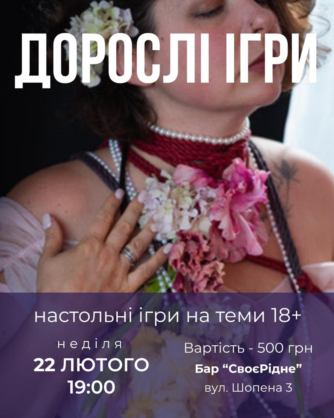 ЦЬого дня буде вечір настольних ігор 18+: будемо грати і говорити про фетіші та людську сексуальність.
