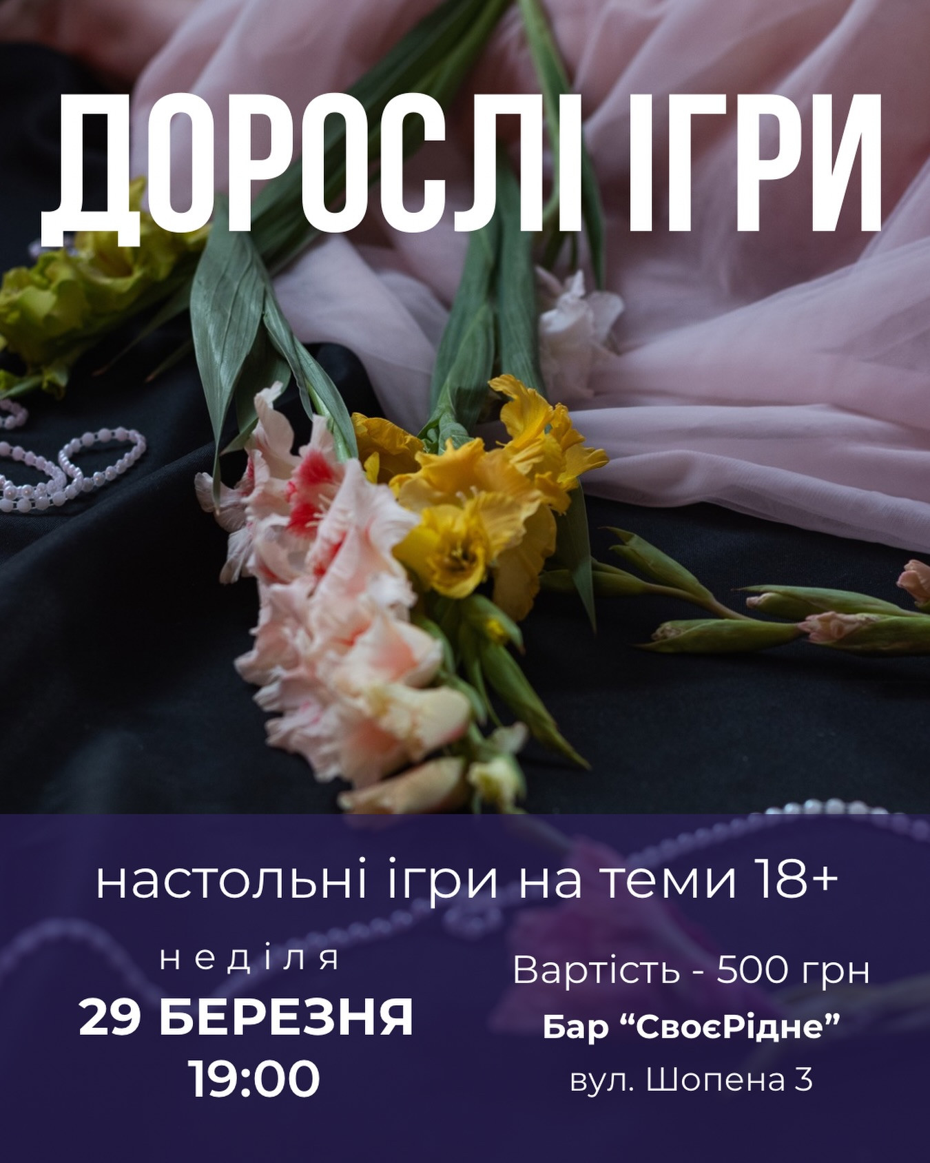 Буде вечір настільних ігор 18+ на тему українського сороміцького фольклору.