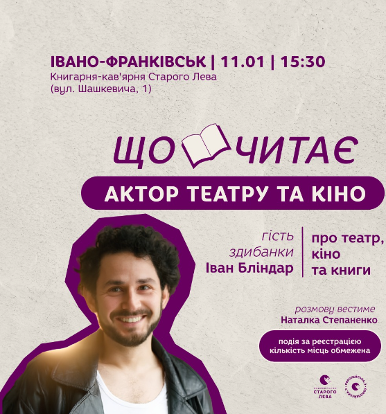 Раді запросити Вас на здибанку з чудовим гостем першої зустріч — актором театру та кіно Іваном Бліндаром!