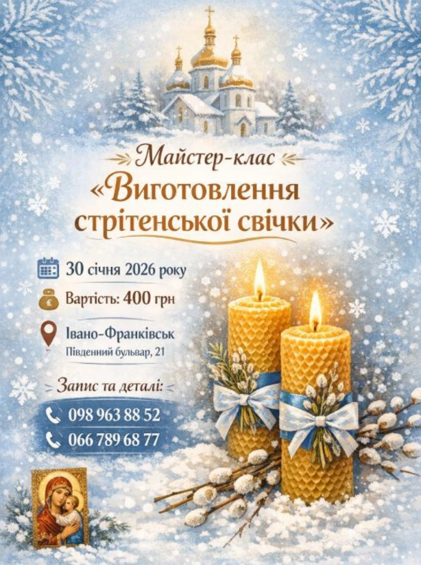 Запрошуємо дітей на теплий і душевний майстер-клас, де кожен власноруч створить стрітенську свічку з натуральної вощини.