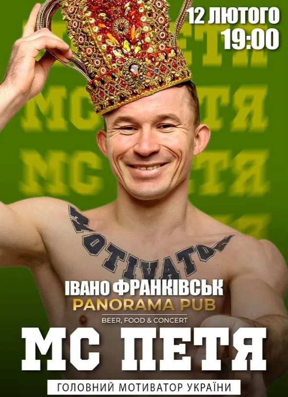 MC Петя — відомий український репер, мотиватор, філософ. Його життєва позиція і теми творчості об'єднують і надихають багатьох людей по всій Україні. Цитати репера, його мотиваційні відео підкорюють TikTok. А живі виступи MC Петя заряджають фанатів енергією лісу та силою звіра.