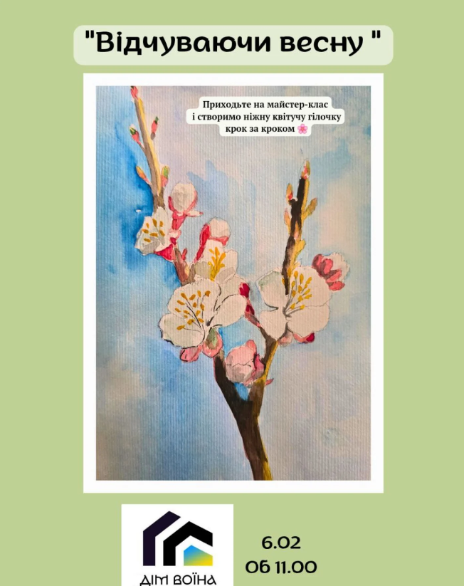 КЗ "Дім воїна" спільно з xartkids організовує творчий майстер-клас, на якому крок за кроком створимо ніжну квітучу гілочку та наповнимо день весняним настроєм.