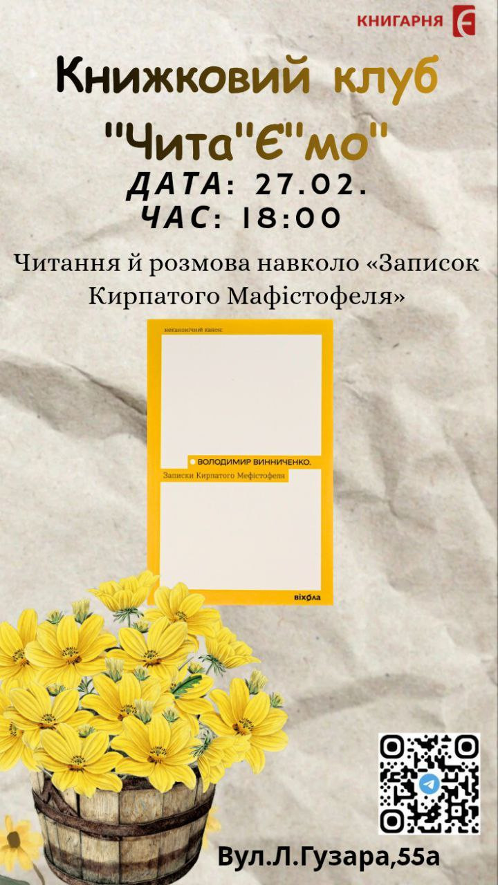 Книжковий клуб. Читання й розмова навколо книги "Записки Кирпатого Мефістофеля" - фото