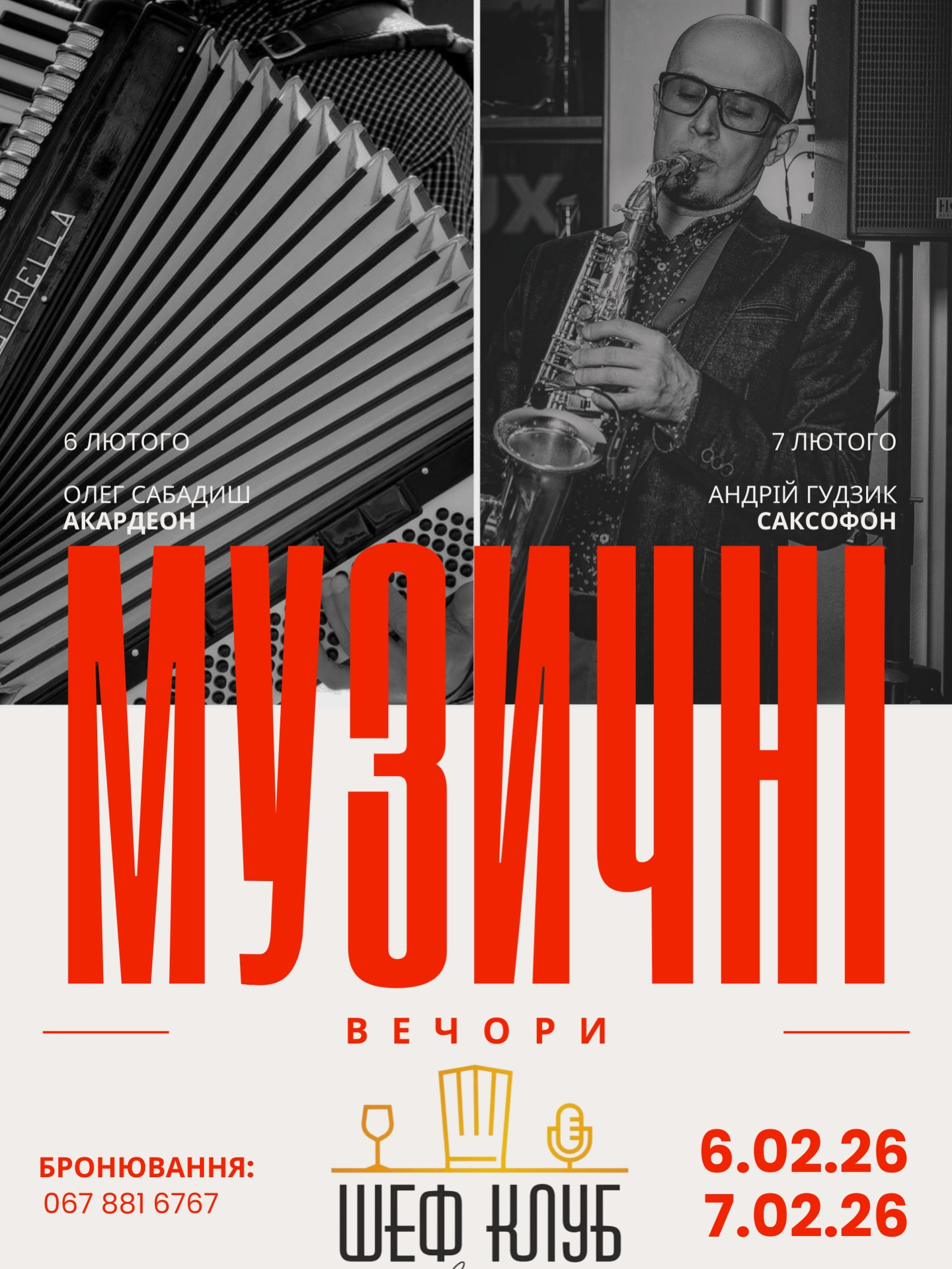 - 7 лютого (субота) - саксофон від Андрія Гудзика.