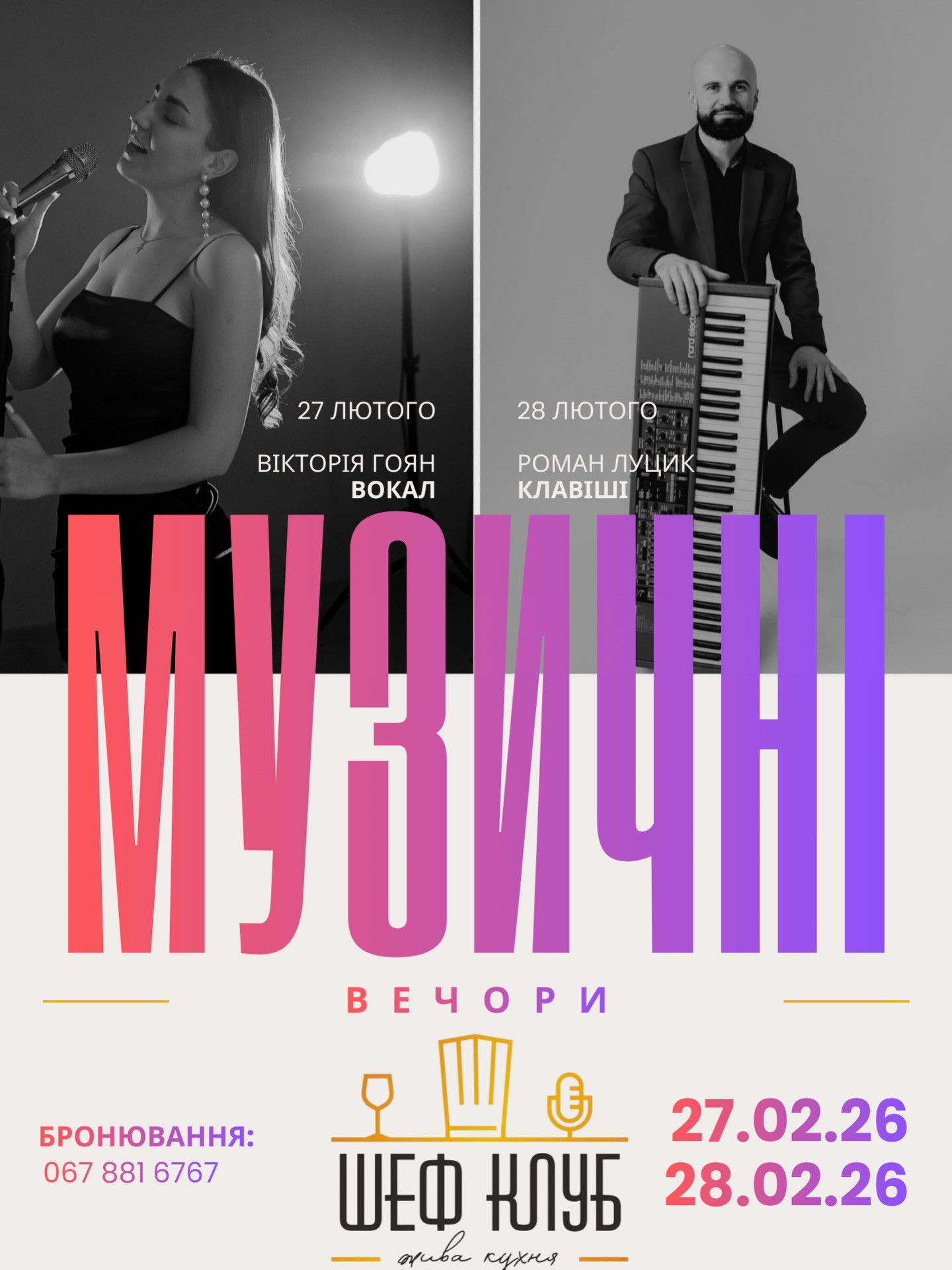 - 27 лютого (п'ятниця) - живий вокал від Вікторії Гоян. Той самий формат, коли вечеря стає трохи довшою, а вечір ще затишнішим.