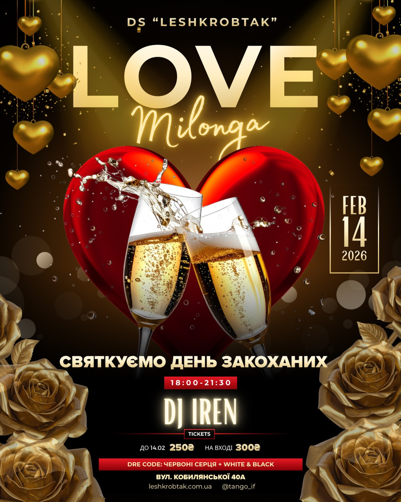 Запрошуємо тебе на особливий вечір - Love Milonga, де Танго звучатиме мовою почуттів, а кожен крок наповнений сенсом. Це час для поглядів, що затримуються трохи довше, для обіймів, у яких хочеться залишитись, і для музики, що торкається серця.