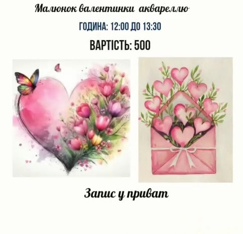 Запрошуємо маленьких художників на ніжний та яскравий майстер-клас з акварельного живопису. Діти створять власну валентинку, експериментуючи з кольорами, формами та настроєм, навчаться передавати емоції за допомогою фарб і води.