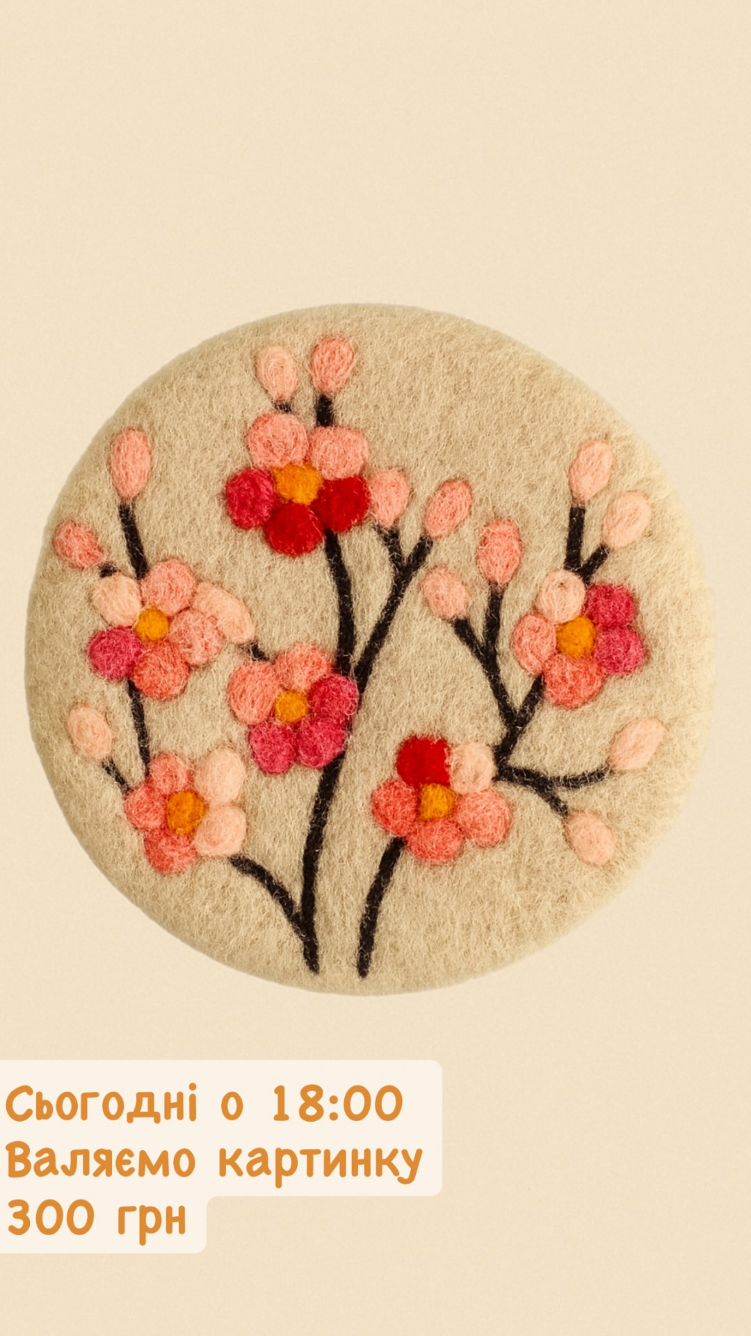 Запрошуємо на майстер-клас з валяння картини "Квіти на гілочках".
