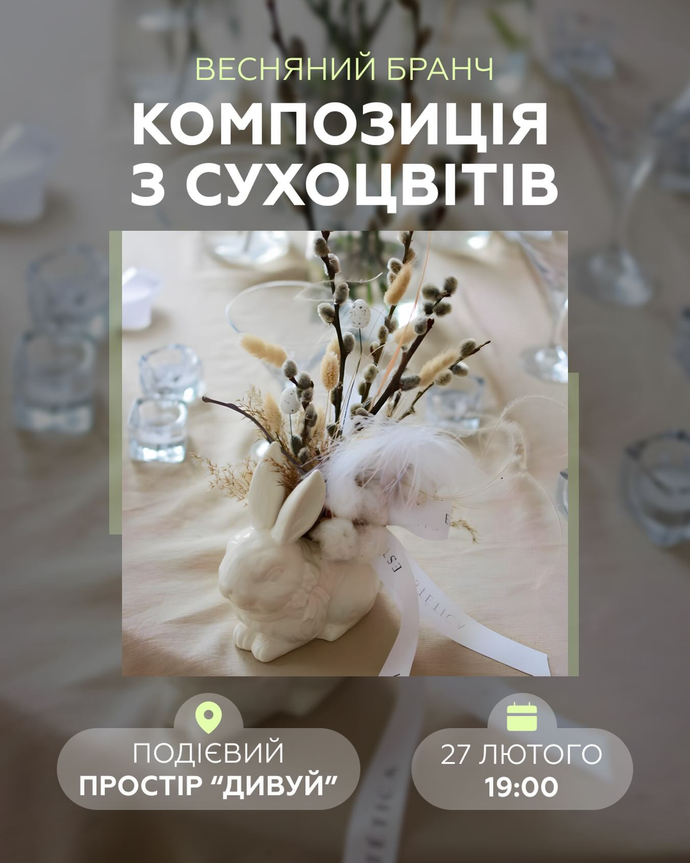Весняний бранч "Композиція з сухоцвітів у вигляді кашпо-зайчика" у місті Івано-Франківськ