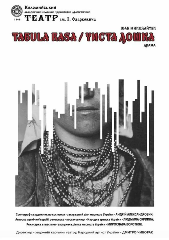 Вистава "TABULA RASA / ЧИСТА ДОШКА" - це перше сценічне прочитання генільного твору Івана Миколайчука мовою театру.