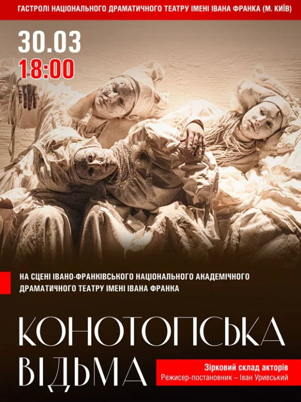 Найпопулярніша вистава країни від найкрутішого сучасного театрального режисера країни Івана Уривського "Конотопська відьма" їде до м. Львів!