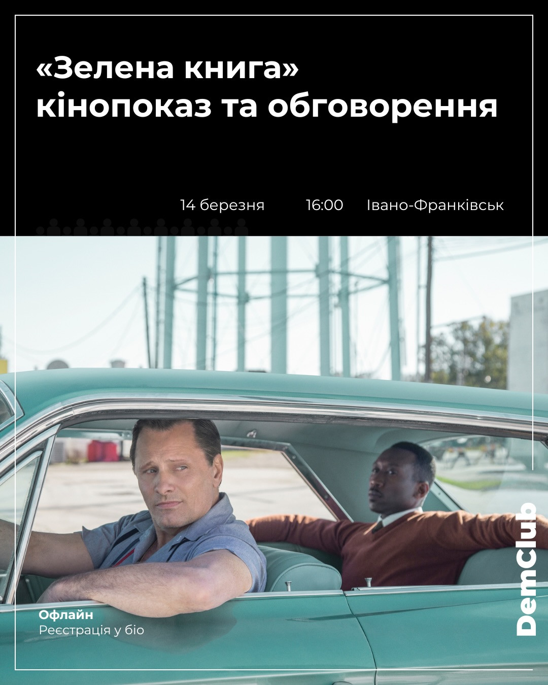 Запрошуємо на спільний перегляд фільму "Зелена книга" — проникливої та теплої історії, заснованої на реальних подіях.