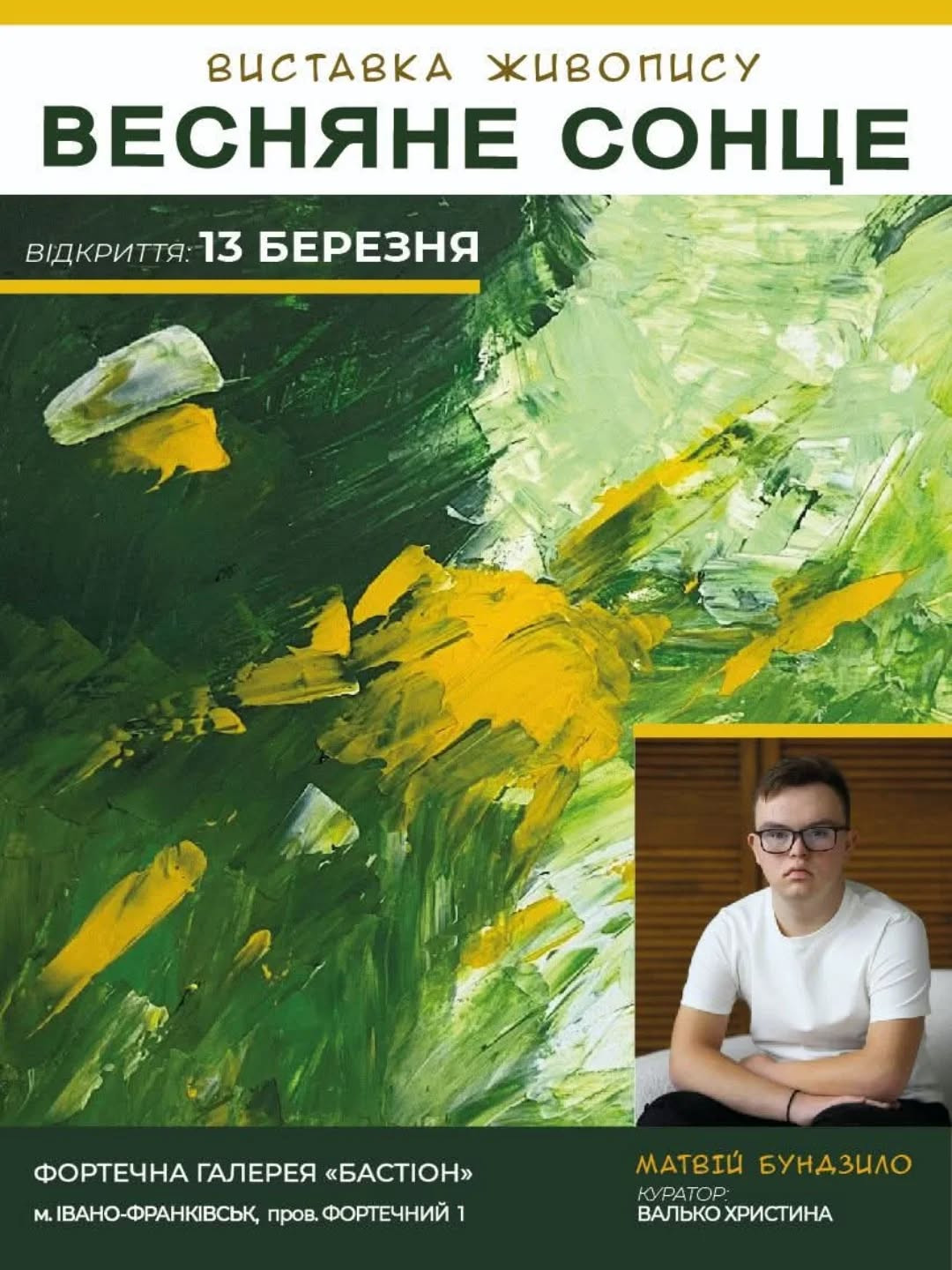 Запрошуємо на виставку робіт юного львівського художника Матвія Бундзила. У експозиції представлені творчі роботи молодого митця, сповнені щирості, фантазії та яскравого бачення світу. Це чудова нагода познайомитися з талантом юного художника та підтримати його творчість.