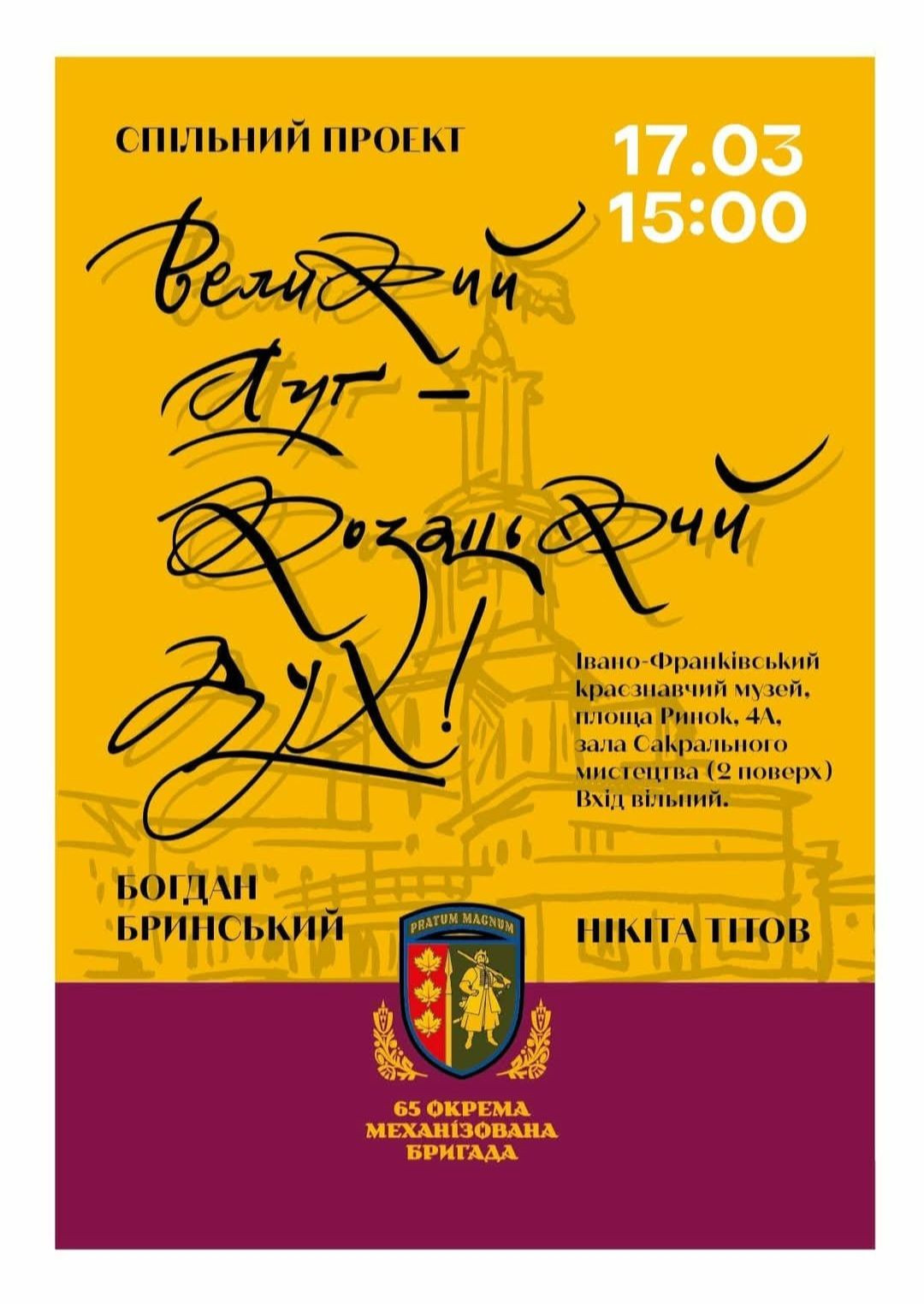 вано-Франківський краєзнавчий музей представляє спільний проєкт славетної 65-ї окремої механізованої бригади та митців Богдана Бринського і Нікіти Тітова "Великий Луг — козацький дух!".