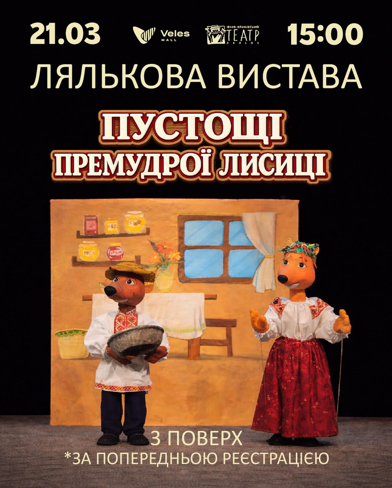 Запрошуємо діток на лялькову виставу "Пустощі премудрої Лисиці" від Івано-Франківського академічного обласного театру ляльок імені Марійки Підгірянки.