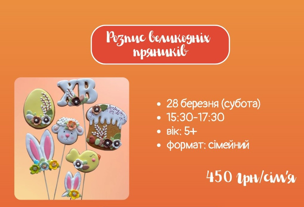Запрошуємо на сімейний майстер-клас "Розпис великодніх пряників". Напередодні Великодня запрошуємо вас долучитися до особливих благодійних вихідних, де творчість поєднується з добрими справами.