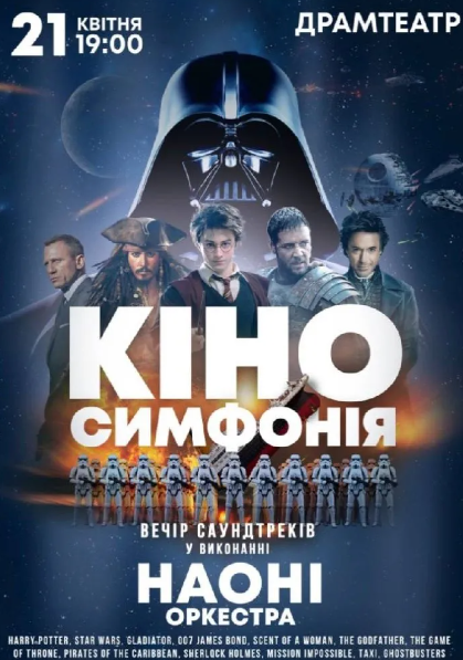 НАОНІ кличе вас у кіно! Насолоджуватися улюбленими мелодіями з кінофільмів можна по-різному: слухати їх у навушниках, повертатися до них під час перегляду улюблених стрічок або додавати до власних музичних плейлистів. Проте жоден із цих способів не здатний передати ту силу емоцій і атмосферу, яку дарує живе виконання на сцені.
