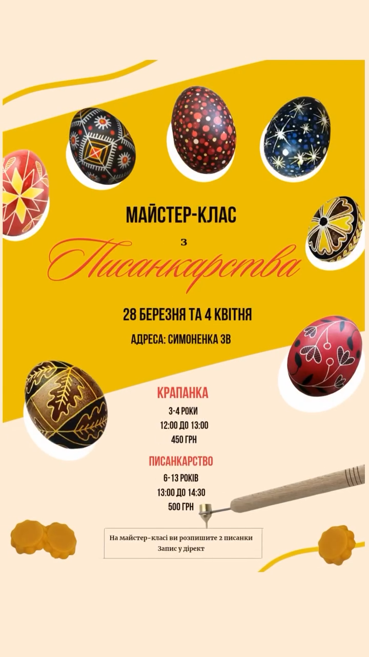 Разом ми освоїмо техніку розпису писанок, наповнюючи їх символами, змістом і теплом власних рук. Це чудова можливість зануритися в атмосферу свята, відчути гармонію творчості та створити унікальний оберіг.