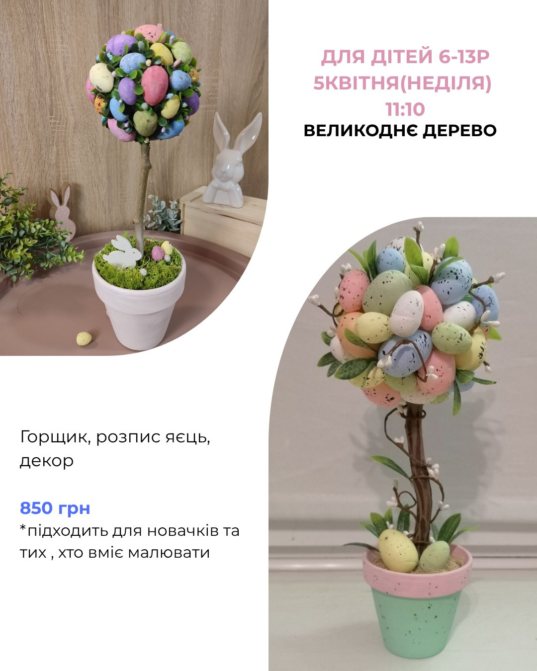 Запрошуємо на дитячий майстер-клас "Великоднє дерево" — яскраву творчу пригоду, сповнену весняного настрою та святкових фарб.