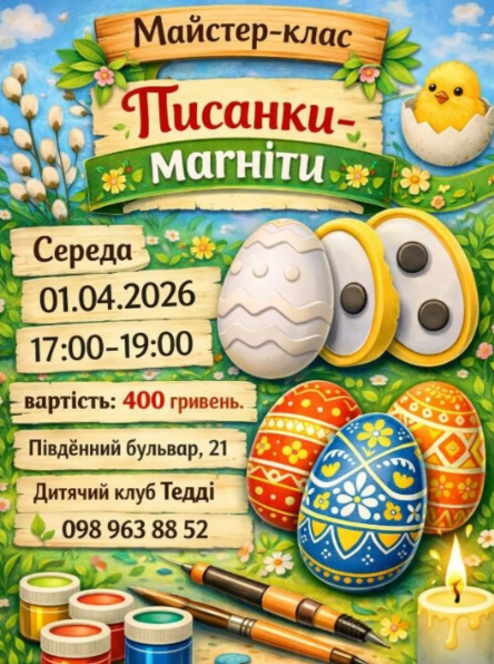 Запрошуємо на дитячий майстер-клас "Писанки-магніти" — яскраву творчу подію до Великодня.
