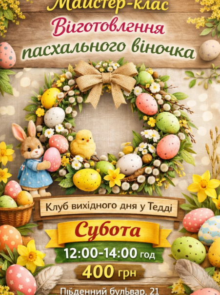 Запрошуємо на майстер-клас з виготовлення пасхального віночка — яскраву творчу подію для дітей.