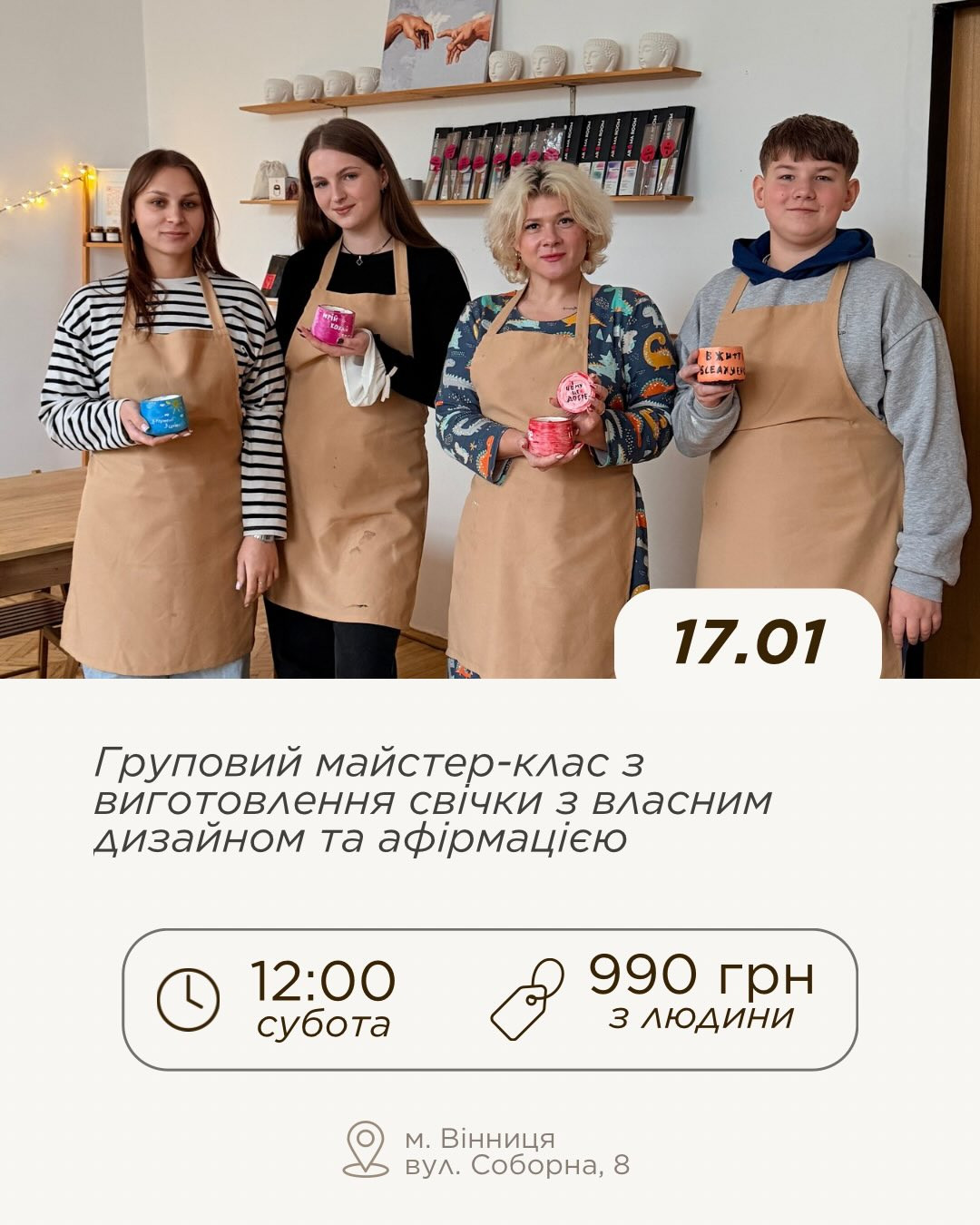 Майстер-клас з виготовлення свічки з власним дизайном та афірмацією у місті Вінниця