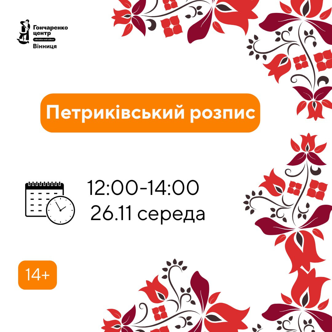 Запрошуємо вас на творчу майстерку з Петриківського розпису — унікального народного мистецтва, що поєднує яскраві кольори, ніжність квіткових орнаментів і щирість української душі!