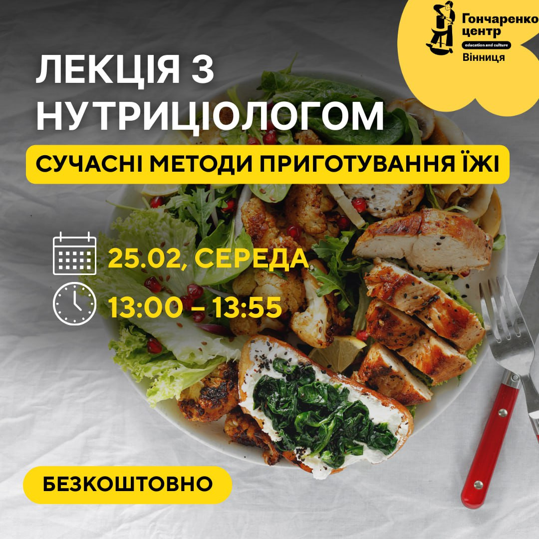 Лекція з нутриціологом "Сучасні методи приготування їжі" у місті Вінниця