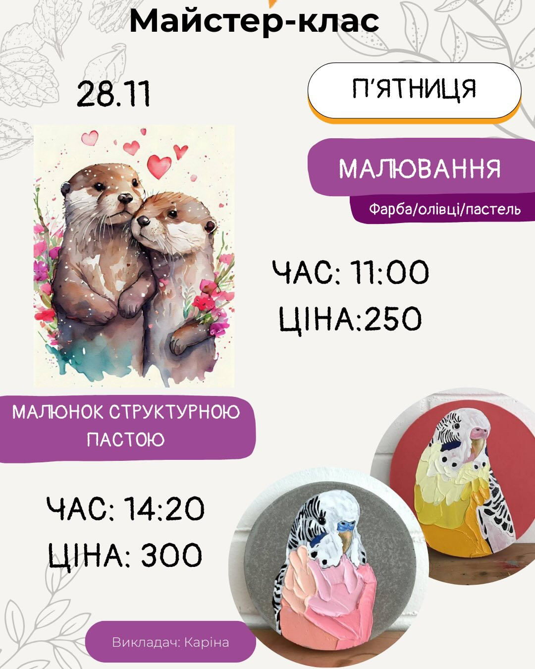 Запрошуємо на майстер-класи "Малювання" та "Малюнок структурною пастою".