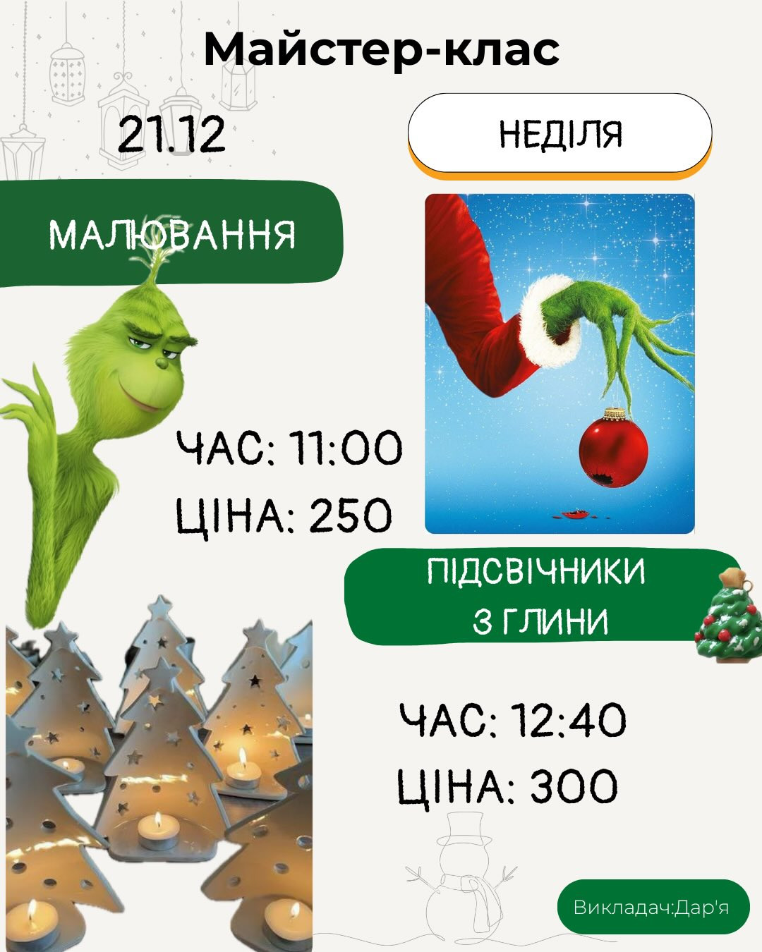 Майстер-класи відбудуться о 11:00 та 12:40 год