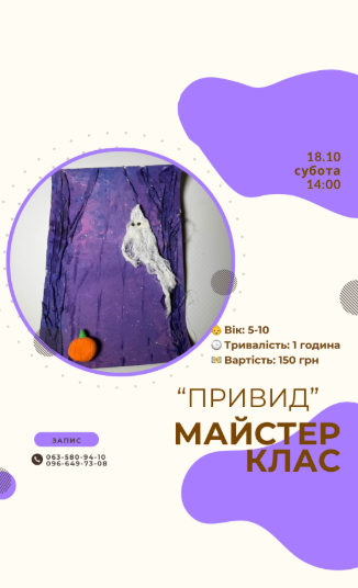 Майстер-клас для дітей "Привид" у місті Вінниця