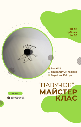 Запрошуємо на майстер-клас "Павучок"!