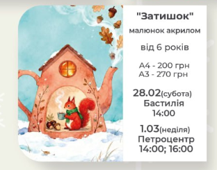 Майстер-клас для дітей "Затишок" у місті Вінниця
