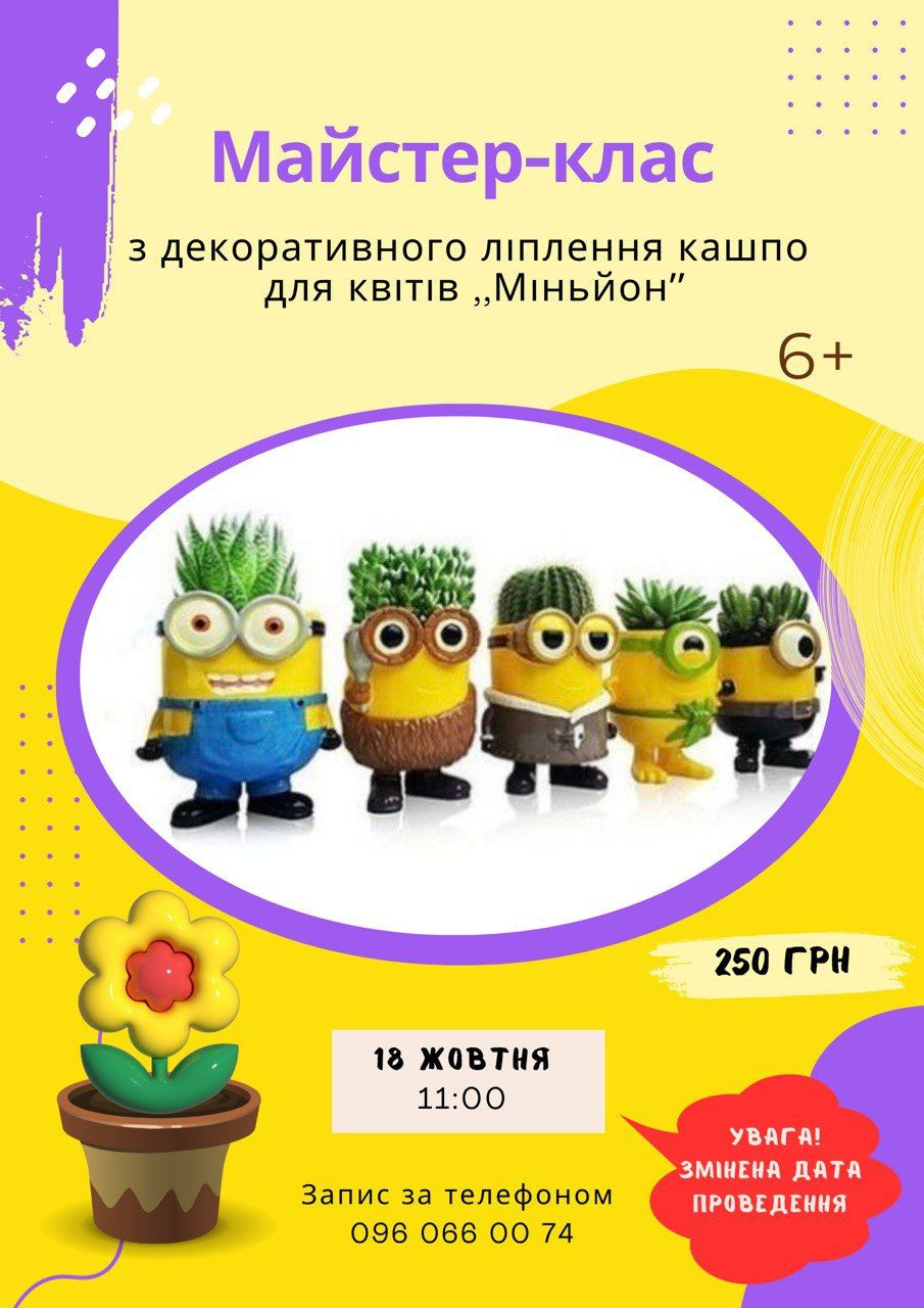 Дитячий майстер-клас з декоративного ліплення кашпо для квітів "Міньйон" у місті Вінниця