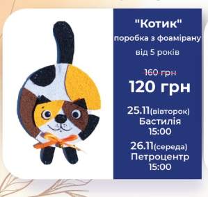 Запрошуємо діток на творчий майстер-клас "Котик".