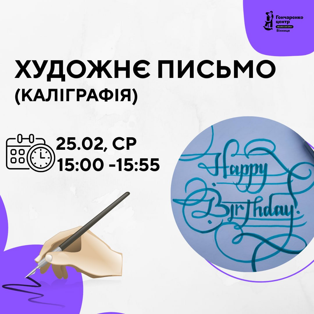 Запрошуємо долучитись до майстер-класу з художнього письма (каліграфії)!
