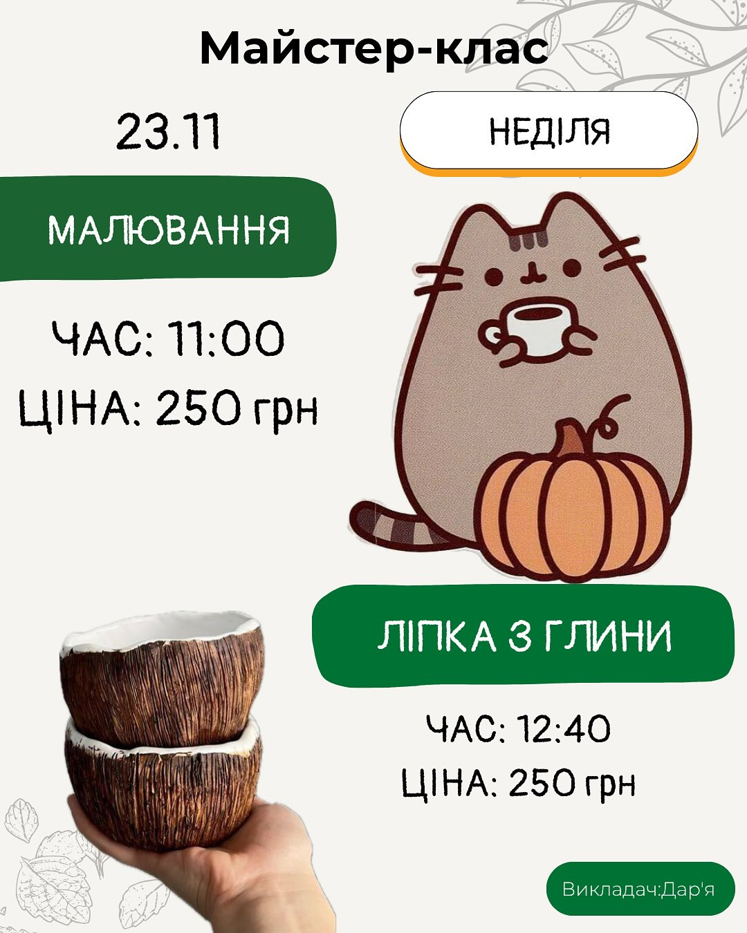 Майстер-класи відбудуться о 11:00 та 12:40 год