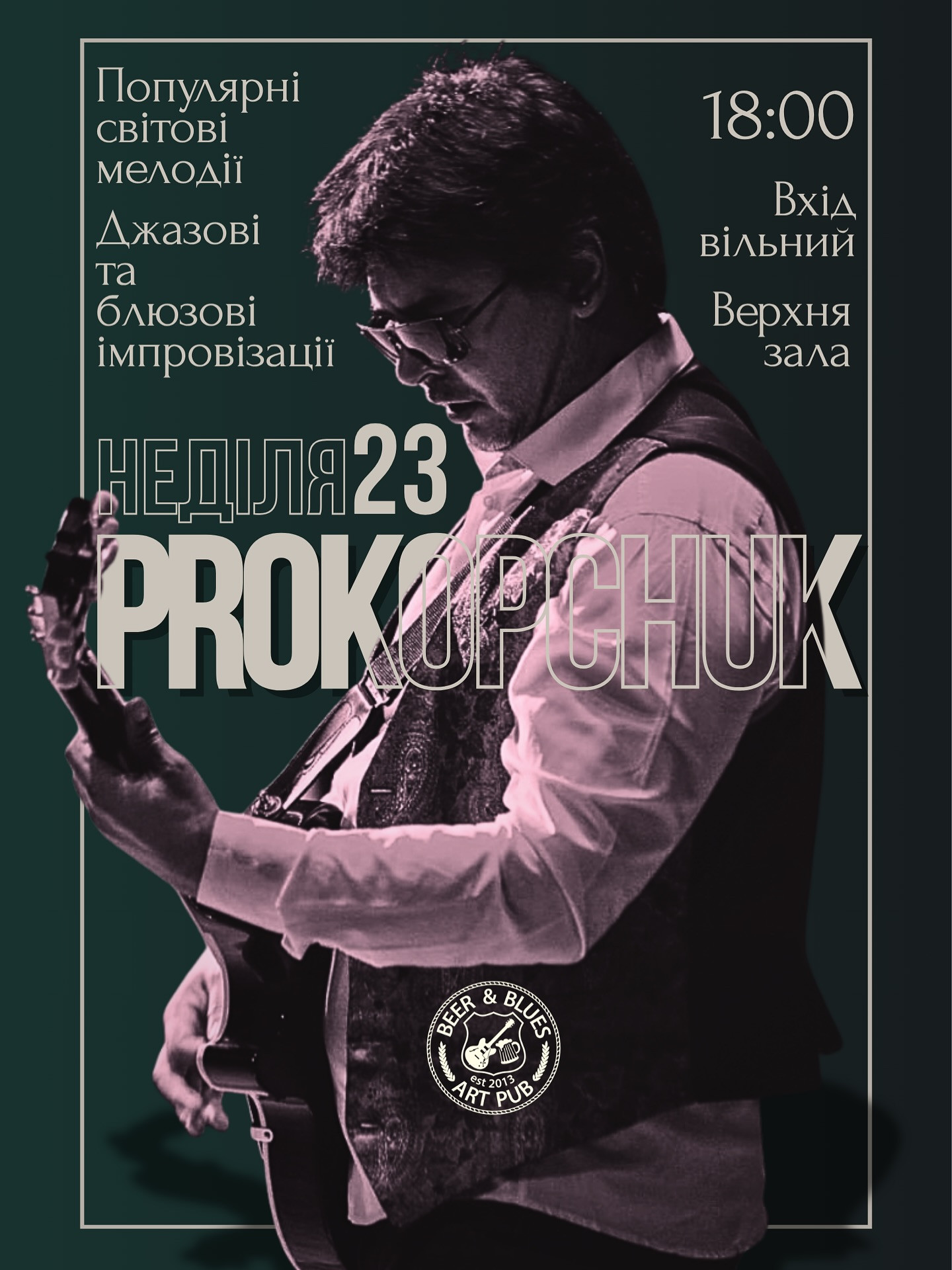 Неділя - гітарист Олег Прокопчук зіграє відомі мелодії та імпровізуватиме в джазових та блюзових фарбах.