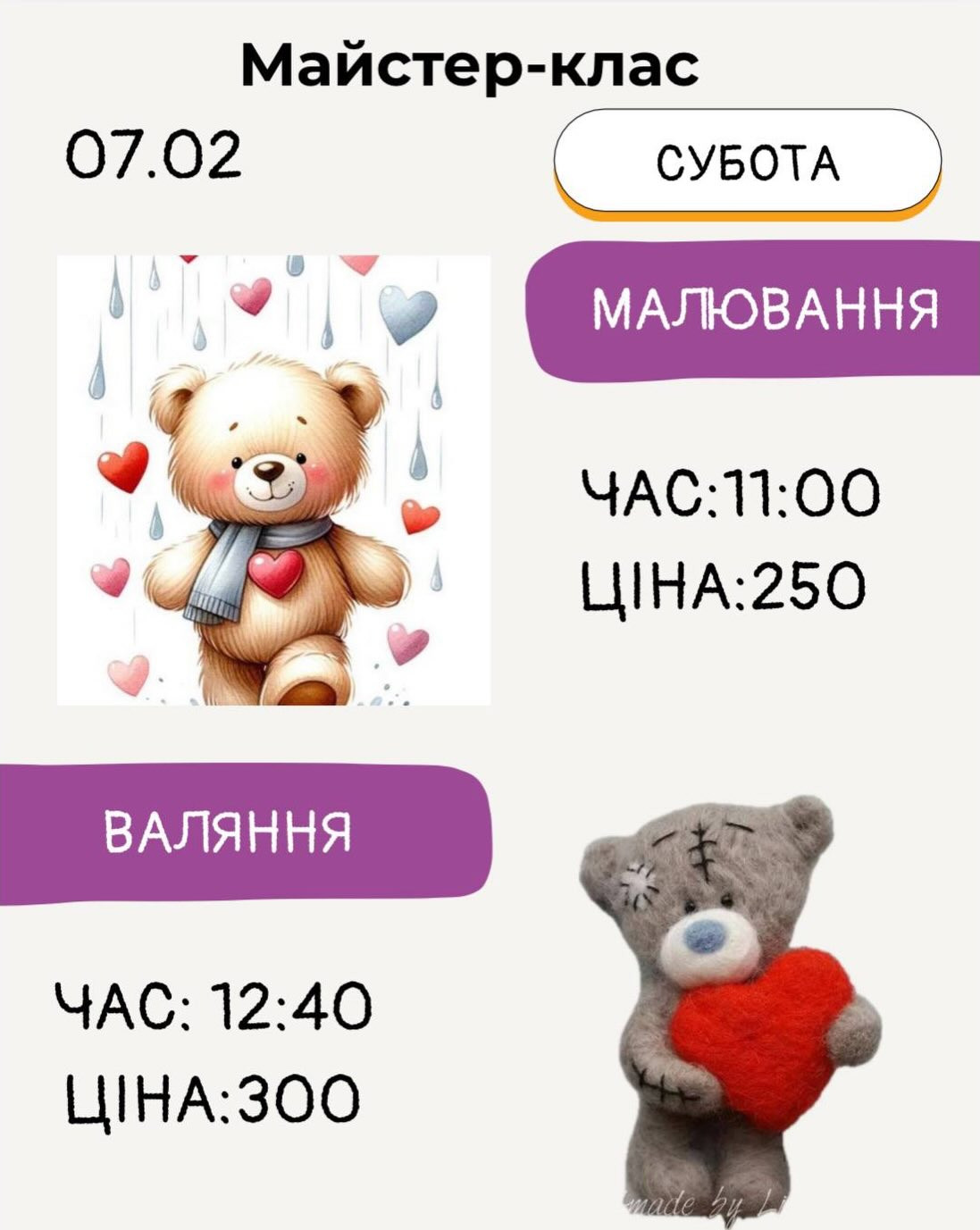 Майстер-класи відбудуться о 11:00 та 12:40 год