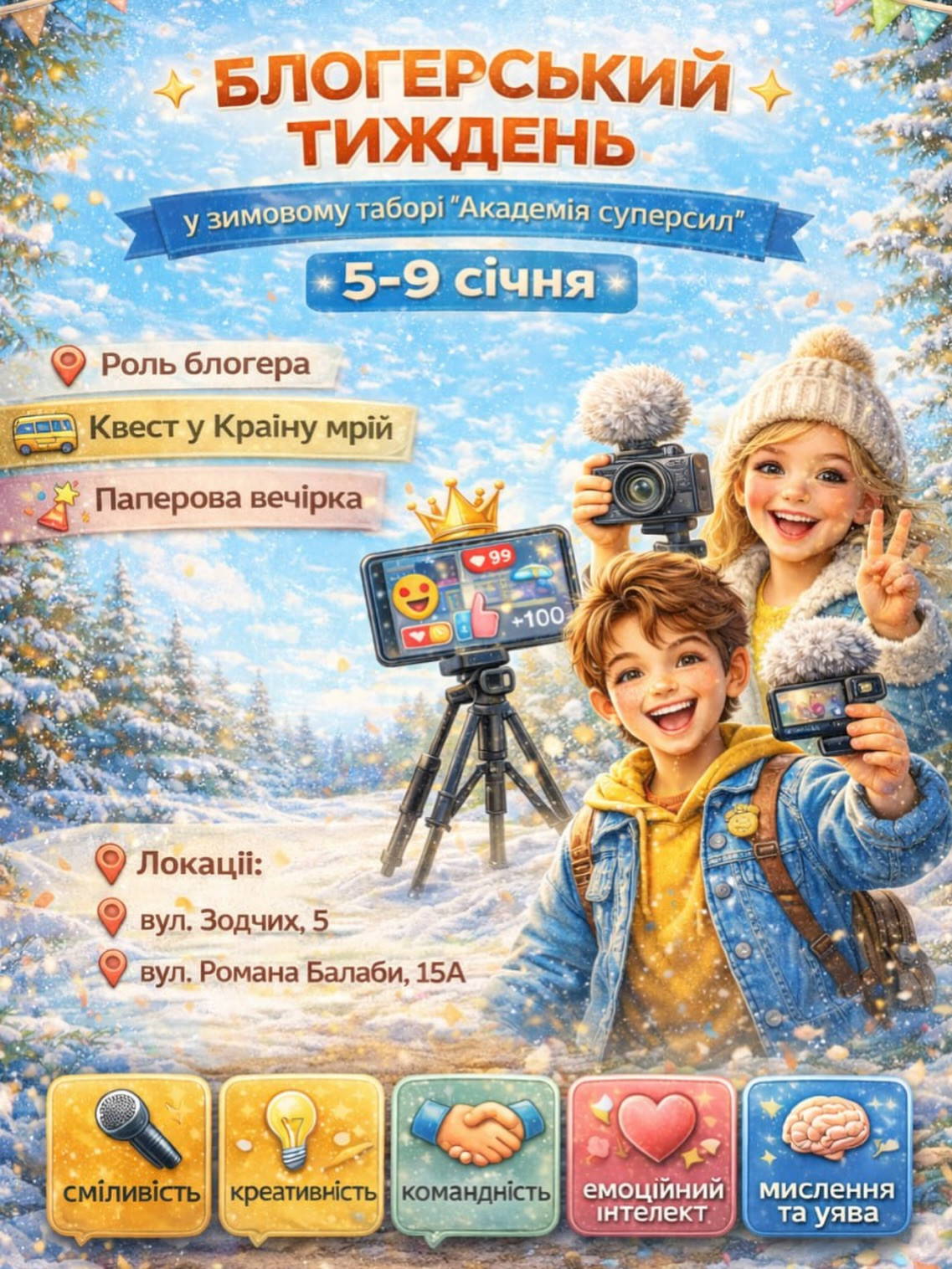 Цього тижня ми запрошуємо дітей у Блогерську Академію, де вони не просто граються, а прокачують свої суперсили через сучасний, цікавий формат.