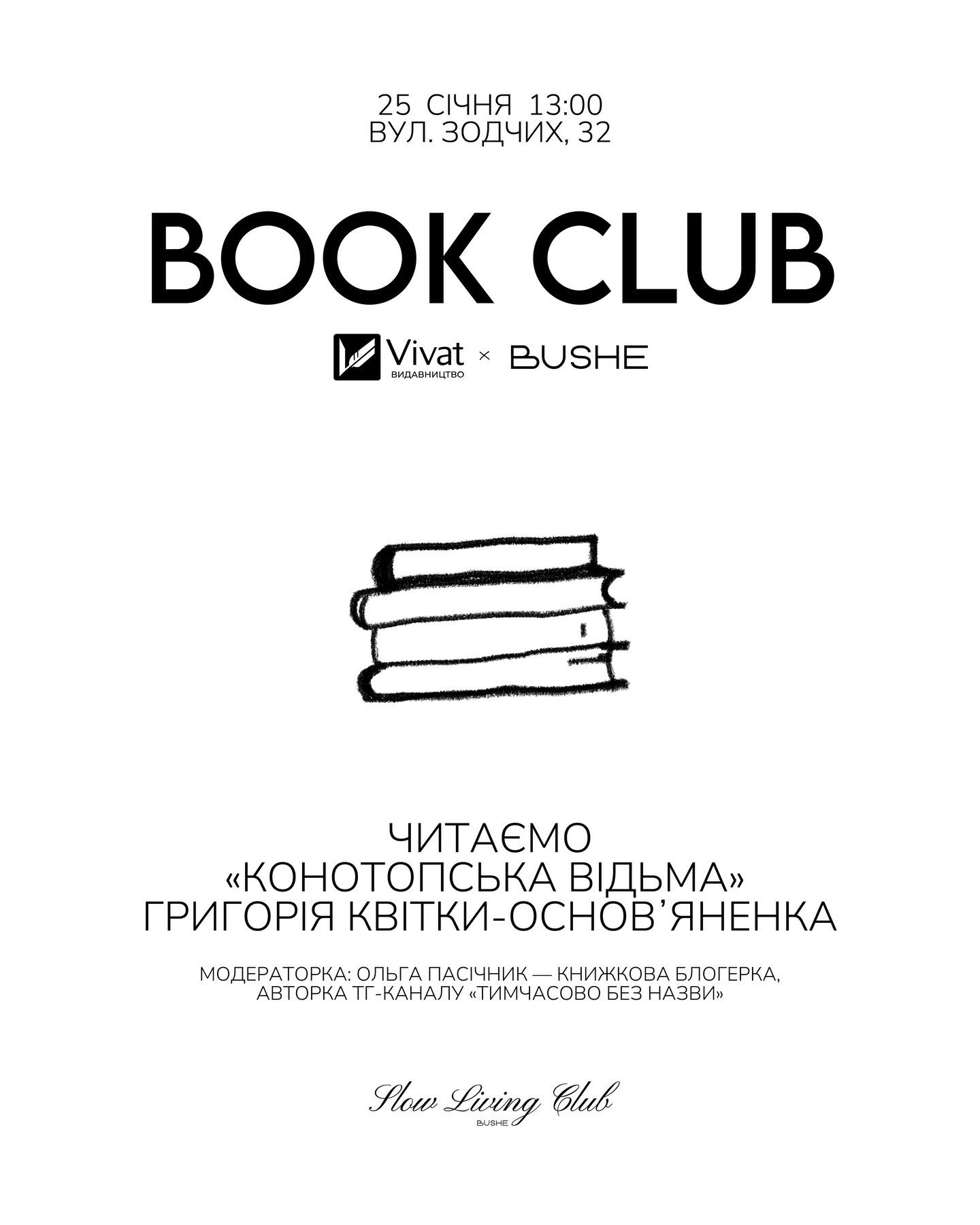 Разом з @mrspasichnyk обговоримо книгу "Конотопська відьма" Григорія Квітки-Основʼяненка, насолоджуючись випічкою та теплим чаєм.