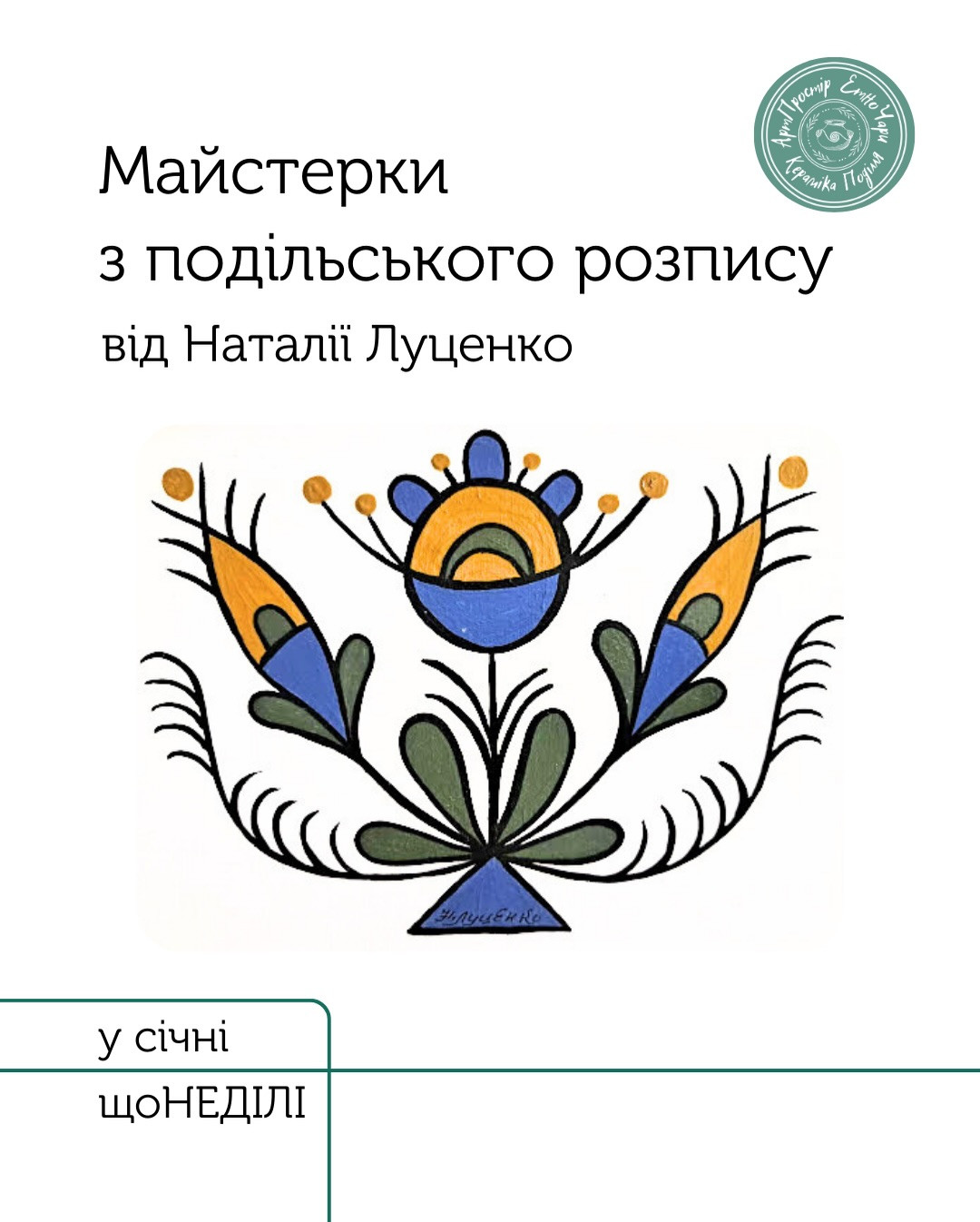 Пані Наталія – знана вінницька майстриня народної творчості, членкиня Національної спілки майстрів народного мистецтва України та Національної спілки художників України, яка працює в різних техніках і готова провести вас у світ подільського розпису вже незабаром.