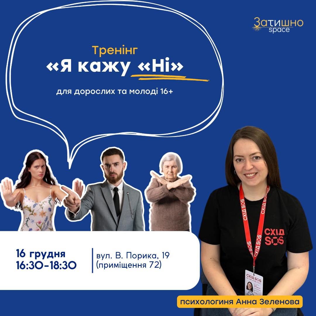 Запрошуємо дорослих на інтерактивний тренінг "Я кажу Ні", де ви зможете покращити розуміння своїх особистих кордонів та здатність їх захищати завдяки цікавим інтерактивним вправам.