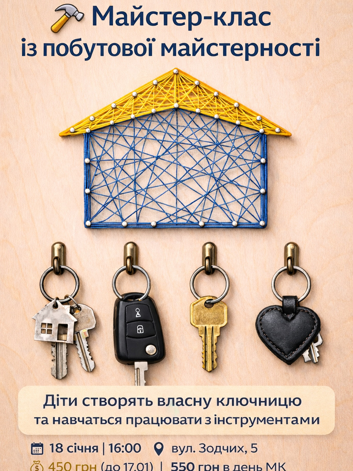 Запрошуємо дітей на практичний МК, де вони власноруч створять ключницю — корисну річ для дому.