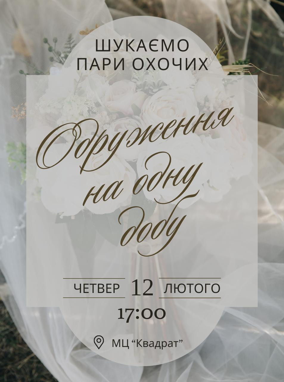До Дня всіх закоханих молодіжний центр "Квадрат" запрошує на символічну церемонію одруження на одну добу.